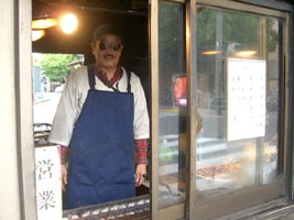 取材中にも親子連れが焼鳥を買いに来た。「2本ください。あんまりいい匂いがするから」「匂いなんか買いにくるんじゃねぇよ!うまいと思ったら買いに来いっ!」と笑いながら喝。ぶっきらぼうな口調とは裏腹に「食べるのは子供?」、母親が頷くと「じゃぁあんまり熱くないのがいいな・・・」と呟いて程よくさめた串を手渡した。