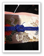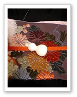 「帯留」というのは、女性が着物に結ぶ「帯」を締めるのになくてはならない帯締めにつけるアクセサリーです。「帯締」は紐状の物で、結び目が帯の真ん中に来ます。「帯留」はブローチ状のものに紐を通す金具がついており、金具に紐を通して帯に巻き、締めた帯の真ん中に来ます。