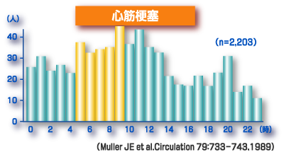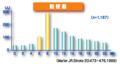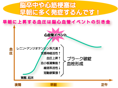 早朝は血管が破れたり、血栓ができやすい時間帯です。そのため早朝は、脳卒中や心筋梗塞などを起こしやすい時間帯といわれています。