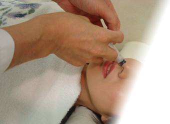 Dr.(医師の説明)「鼻の血管を収縮させて、通りをよくするスプレーをします。のどに落ちてきてにがいときには吐き出してしまってください。次いで鼻腔の麻酔をします。5分ぐらいで鼻の中がしびれたような感じになったら、検査を開始します。検査前の処置はこれだけです。」