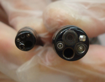 Dr.「経鼻内視鏡の太さは直径5.9ミリで、太いうどんやパスタと同じくらいです。口からの内視鏡とくらべて見ると、ずいぶん細いことがおわかりいただけるとおもいます」