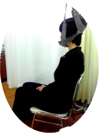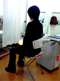 椅子に座り、あごと後頭部にベルトを装着します。器械にセットして、スイッチが入ると、上方にゆっくりと引っ張られていきます。引っ張る力が強くなるにつれて、背骨が伸びていく感じがわかります。日ごろ姿勢が悪くて肩・首がこりやすいという人に、おすすめかもしれません。