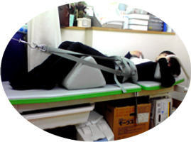 牽引(引っ張る作用)と休止(緩める作用)を繰り返すことにより頚部、腰部の筋肉や筋膜由来による痛み、加齢や腰の不良姿勢、軽微な外傷(打撲や捻挫)、スポーツ傷害などにより生じた椎間板の変性や椎間関節の変性、靱帯の変性などによって起こる痛み、シビレを緩和する治療法です。