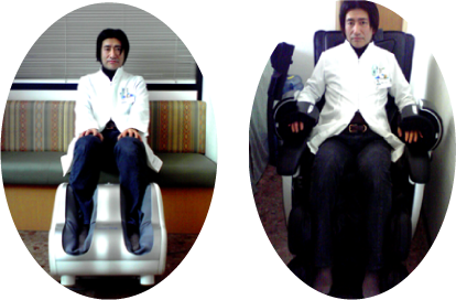 待合室には、全身マッサージ機、足裏ふくらはぎのマッサージ機があります。いつでもご利用ください。