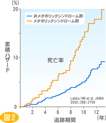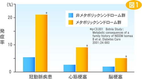 メタボリックシンドロームは、ウエストの周囲径で、内臓脂肪の蓄積度合を推定して、心筋梗塞や脳血管障害を起こしやすい状態かどうかを診断する、新しい病気のとらえ方です。