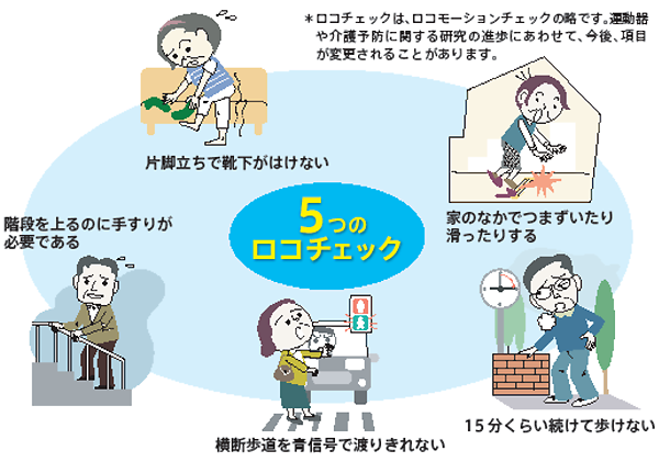 下記の項目で一つでも該当すれば「ロコモ」の心配があるといえます。
