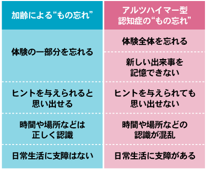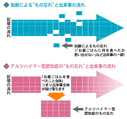 加齢による“もの忘れ”、アルツハイマー型認知症の“もの忘れ”