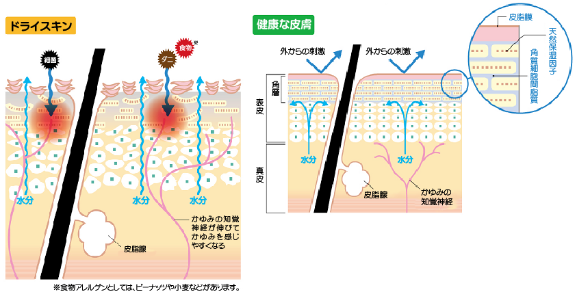 このバリア機能を維持するために大切なのが皮膚のうるおいを保つ「
