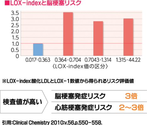 LOX-index は今後10年の脳梗塞、心筋梗塞の発症を予測する血液検査です。