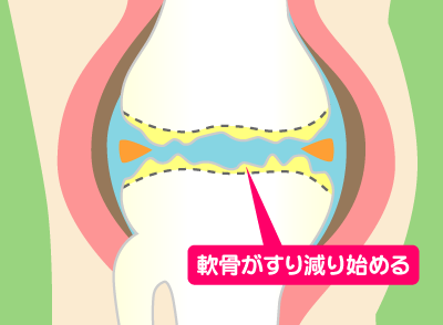 加齢により硝子軟骨は摩耗していき、関節液も減少します。半月板も一度損傷すると再生しません。