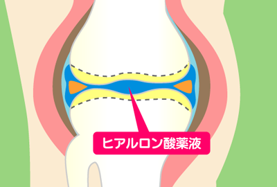 ヒアルロン酸は、関節の中を満たしている関節液に含まれている物質で、関節を動かす際の潤滑液とクッションの役割を果たしています。